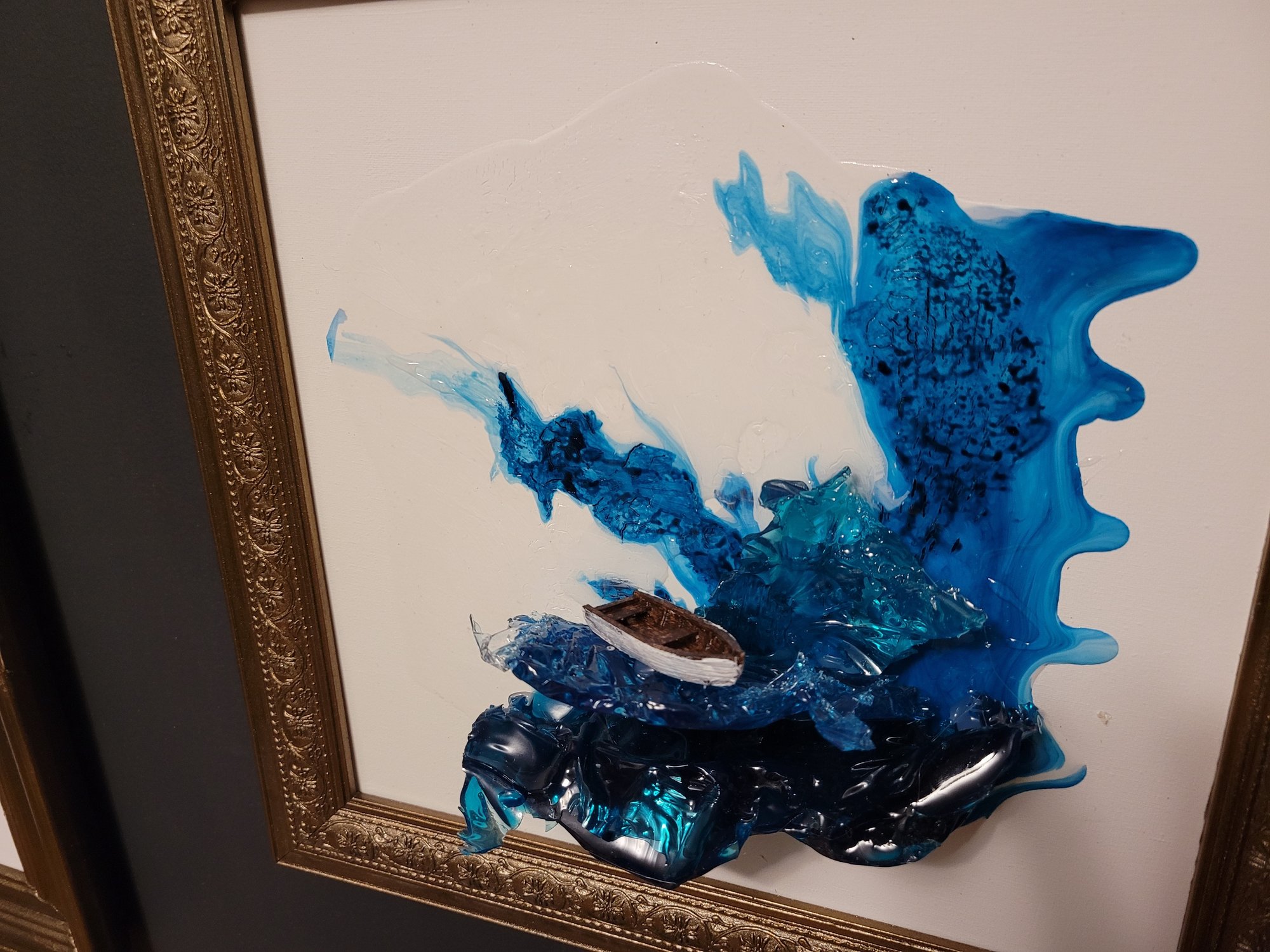 Mixed Media: acrylic and resin, framed in a repurposed vintage frame.