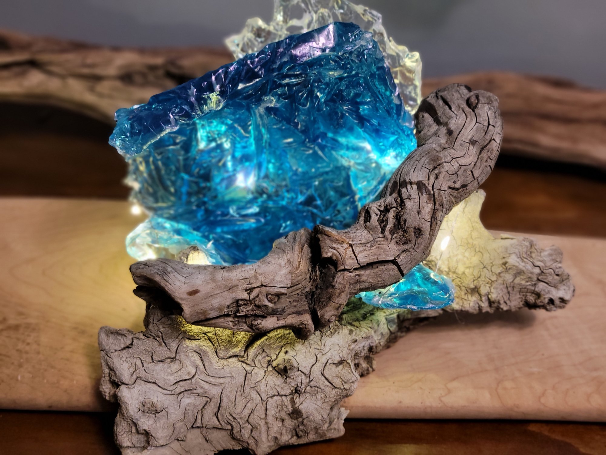 My personal favourite. Multi-media sculpture. Resin, driftwood & acrylic.
